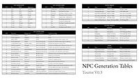 - December 10, 2023 by Toastmortem#d100, #game design, #Sci-fi, #Tabletop, #Tabletop role-playing game, #sandbox, #science-fiction, #random, #generation tables, #NPCsHowdy, I put together a handful of tables to aid in generating random tourists for the PCs to encounter on their expeditions, which can be seen in the included image/thumbnail for this post. They repr... Continue reading
